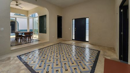 Cuenta con sala, comedor, patio, 3 recámaras, mezzanine, piscina, bodega/cuarto de máquinas y cuarto de lavado.